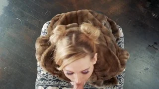 Hottie In Fur Coat Sucks Your Cock and Takes a Huge Facial